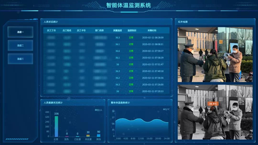 智能体温监测系统基于无感体温检测手段,结合体温检测终端设备及数据分析管理平台,利用大数据智能分析及新一代工业互联网等技术,准确、快速识别人员体温并进行对比分析,实现人员身体健康状况预警,以达到对本单位全体员工及外来人员实施体温检测、排查上报实现全方位管控的目的。